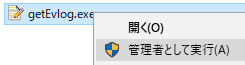 本ツールを右クリックし、「管理者として実行」ポップアップメニューを選択。
