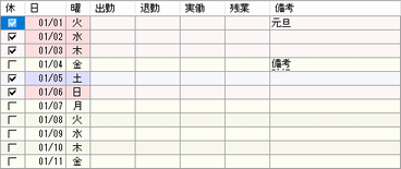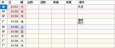 | 改行間隔が広がり、備考欄に改行が含まれている場合、自動的に高さ調整します。 | 改行間隔が詰まり、一覧をコンパクトに表示します。 |
