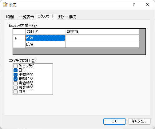 エクスポートでCSVファイルに保存するときに出力する列を選択します。