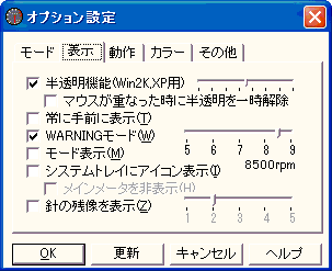 値が、指定した回転数(rpm)以上になった時、WARNINGランプを点灯します。