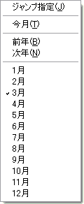 をクリックすると、ジャンプ指定のポップアップメニューが表示され、手軽に任意の月を表示できます。