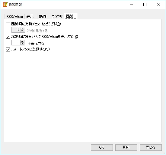 チェックするとWindowsのスタートアップにRSS速報を登録します。