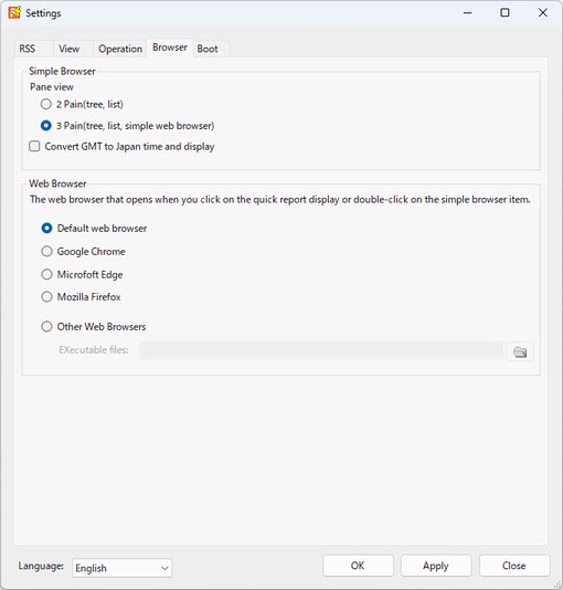 If you check this box, RSS data in GMT will be converted to Japanese date and time before displaying it.