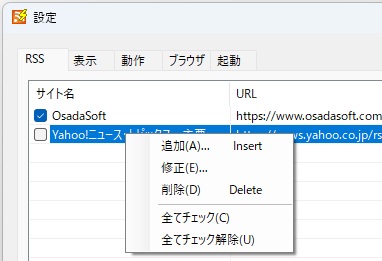 ポップアップメニューから[設定]を選択すると設定ダイアログが表示されます。
