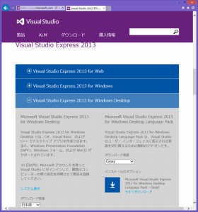 Microsoft Visual Studio Express 2013 for Windows Desktopをダウンロード